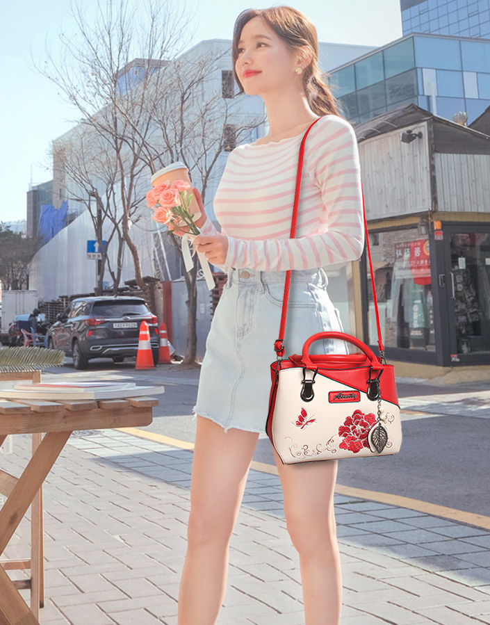 TRJB-0055,wholesale factory pu trendy ladies embroidery pendant single shoulder crossbody handbag